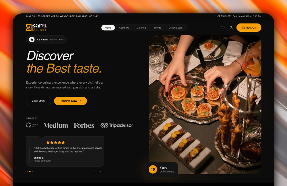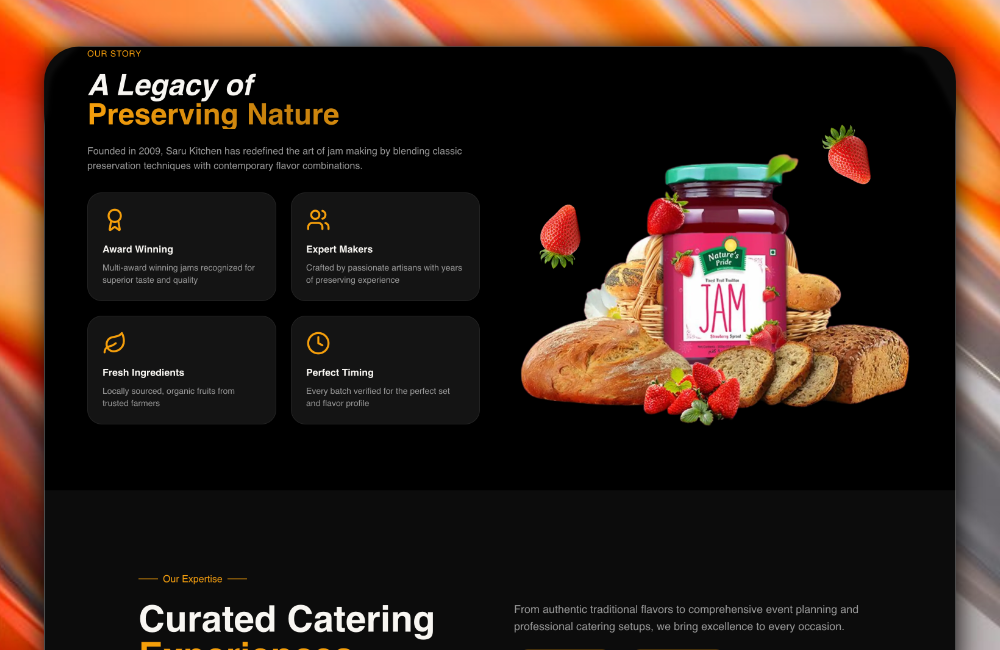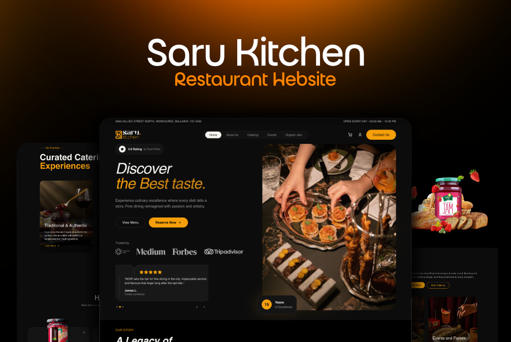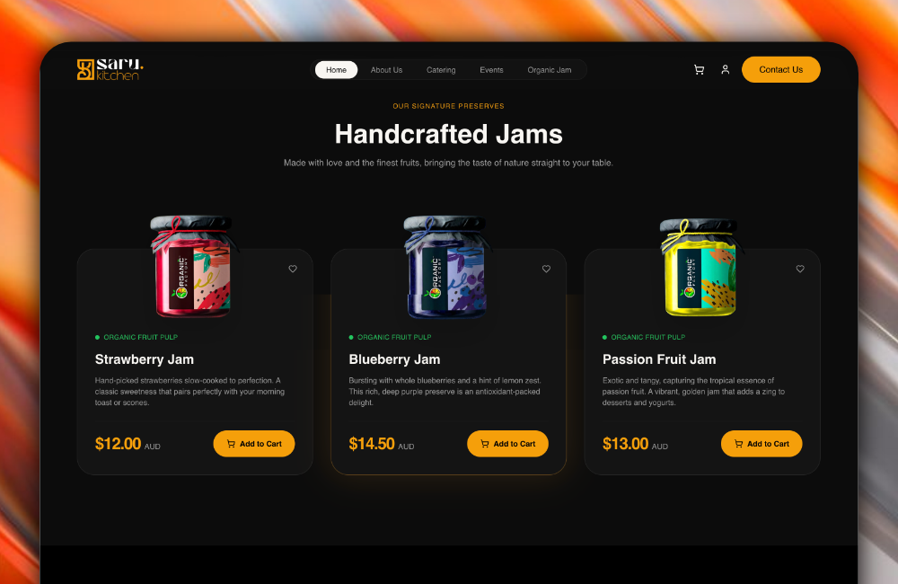 Saru Kitchen is a comprehensive web solution for a culinary brand specializing in event catering and organic preserves. Developed using Next.js, the platform integrates professional service showcases with a sleek product gallery, delivering a premium, responsive experience for both Australian and Sri Lankan markets.