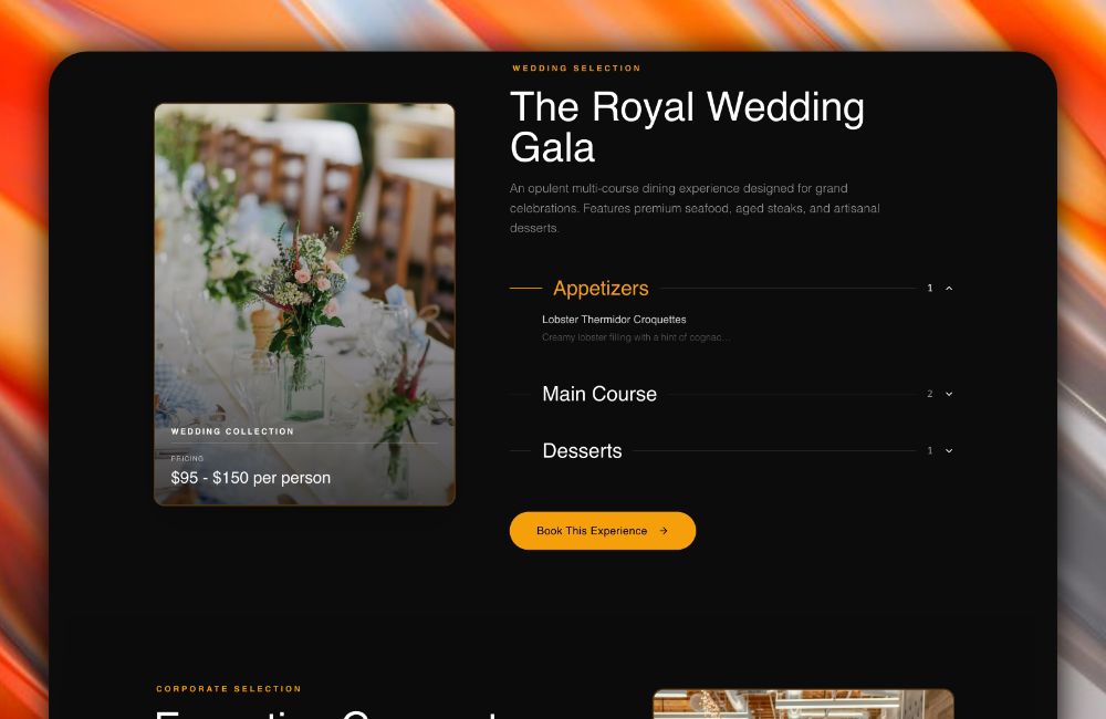 A high-performance catering and artisanal e-commerce platform built with Next.js, featuring a refined UI for event booking and handcrafted product sales.